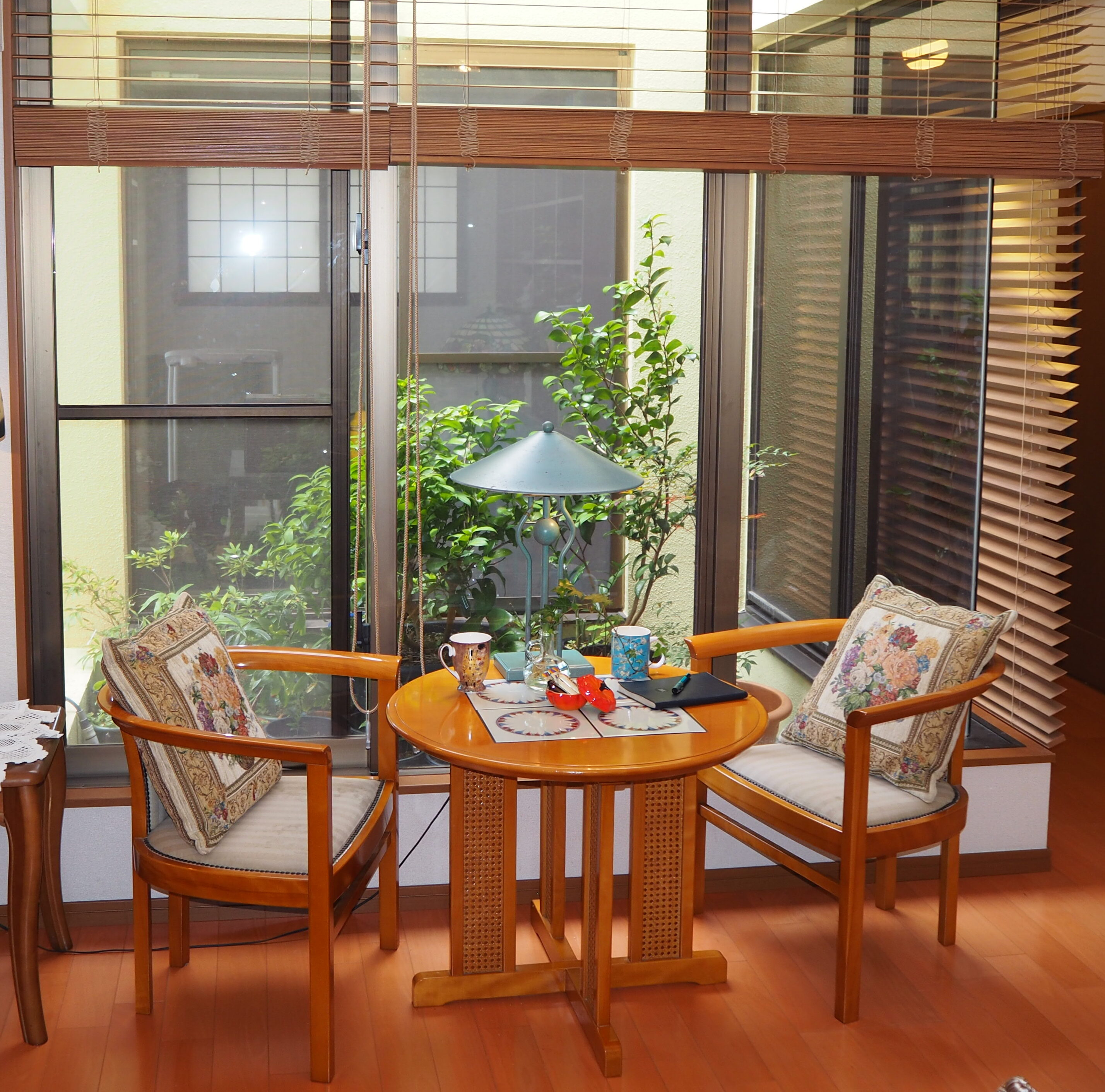 また、ダイニングの窓際に坪庭を見ながら珈琲が飲めるスペースを設置。