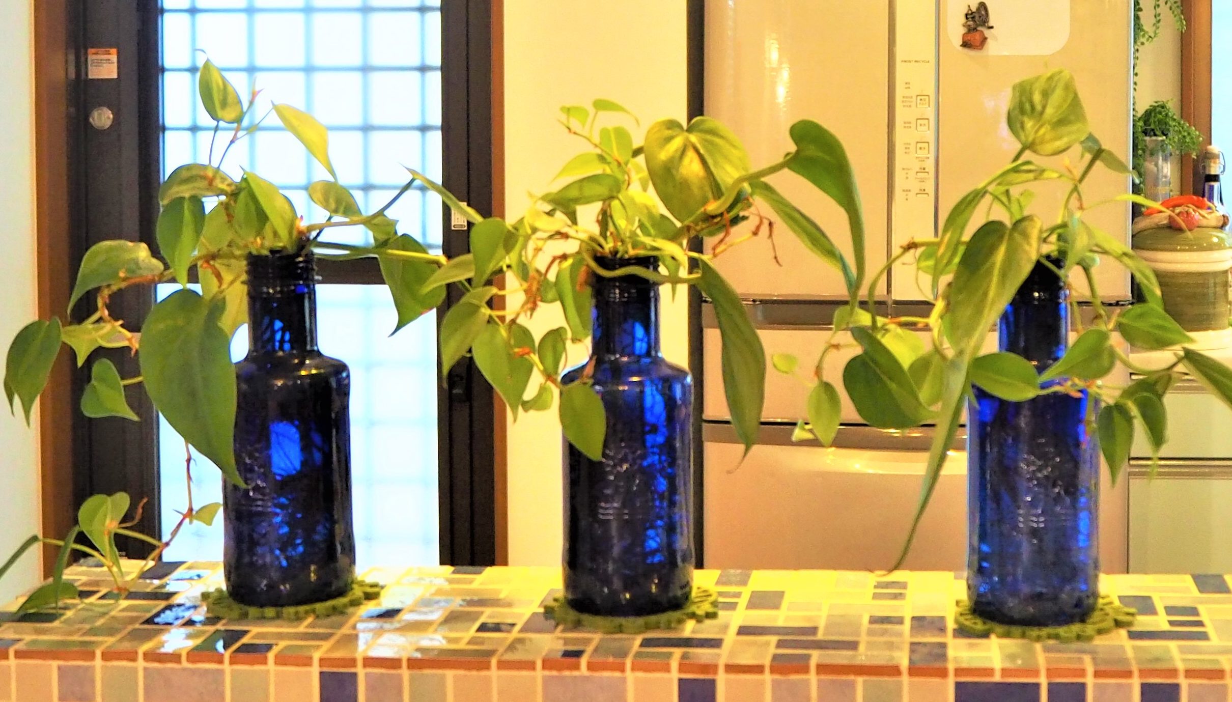 同じシャンデリアが無く、しかも天井が斜めになっているので、あえて天井の低い方は小ぶりのシャンデリアをつけました。違うシャンデリアを並べて置いて、チグハグにならないように選ぶのが大変でしたよ。(沖縄では、インテリアショップも少なくて、現物を見ながら選べる選択肢が少なくて大変です(涙))